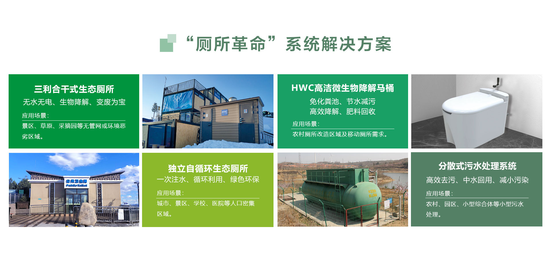 我們專注于“源頭”上的廁所革命,系統解決景區(點)、城市和農村三大領域的實際需求,是真正意義上的生態環保廁所。